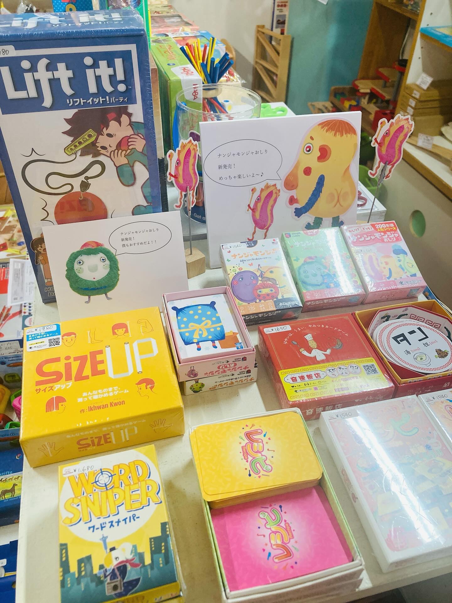 ナンジャモンジャにおしりが新登場!キャラクターに名前をつけていくゲームです。同じキャラクターが出たら、つけた名前を思い出し、早く答えた人が勝ちとなります。新商品のおしりは、何何のおしり~と答えなければいけません。私は子供達に全く勝てません。老化かな。